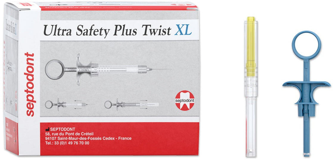 Septoject® Dental Hypodermic Ultra Safety Plus Twist XL Needles feature a patented locking system for increased ease of use and safety.