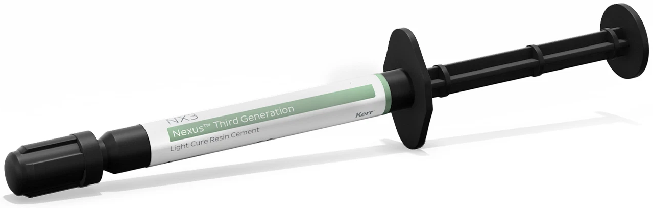 Nexus® Third Generation (NX3) is a permanent resin dental cement system universally indicated for all indirect applications including veneers. With Kerr’s proprietary amine-free initiator system and optimized resin matrix, NX3 is the first truly color-stable adhesive resin cement.