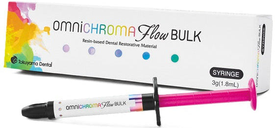 OMNICHROMA Flow BULK Composite is a one shade, bulk fill composite, capable of shade-matching any tooth color from A1 to D4. It is a low viscosity, light-cured material, suitable for anterior and posterior restorations.