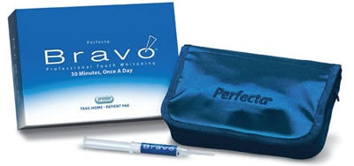 Perfecta® Bravo® tooth whitening gel whitens teeth and avoids sensitivity by using 30 minutes a day for two weeks.