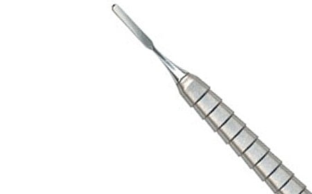 The blade shapes is slightly rounded and paper thin to slide easily below the gumline. It is flexible so there is less chance of breakage to occur.