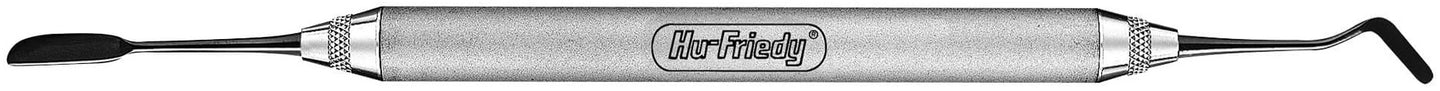 Unique combination of thin, knife-shaped blade with standard angled blade.