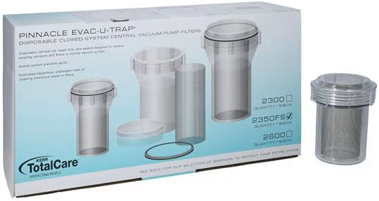 The Evac-u-Trap™ is a disposable canister, lid, mesh filter and gasket designed to replace the present canister and filter in central vacuum pumps.