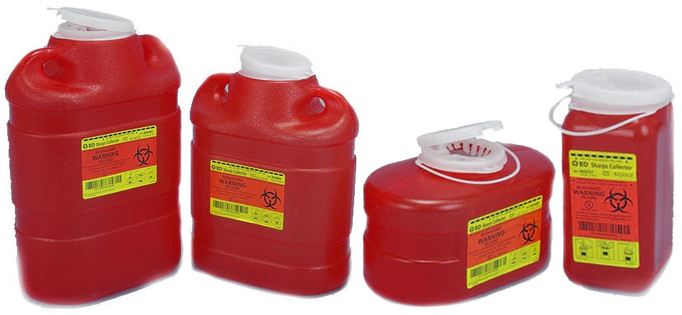 BD Sharps collectors with dual access and convenient, vertical "point first" drop. Comes pre-assembled with a patented one-way funnel valve to prevent needle-stick and overfilling.