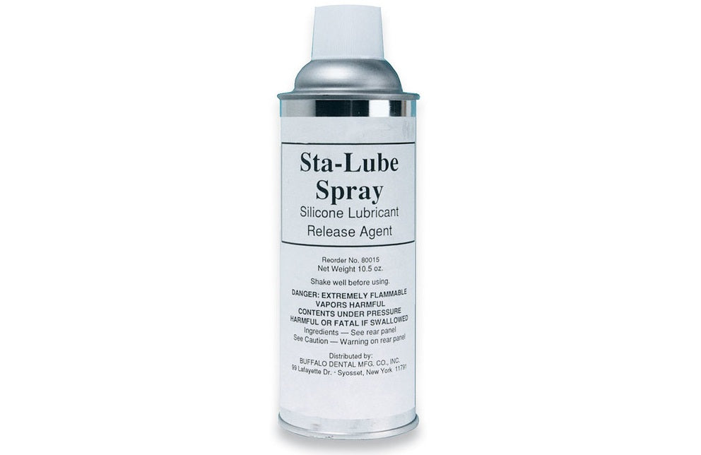 Sta-Lube™ Spray is a silicone lubricant spray to prevent sticking to models, vacuum table and frame when making dies.