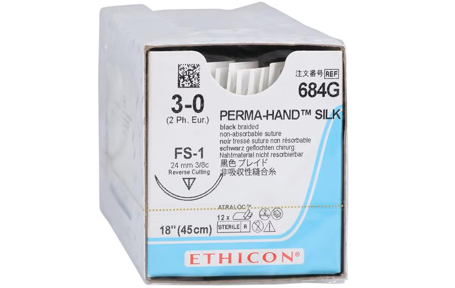 Perma Hand™ Silk Black Braided Sutures are a nonabsorbable, sterile, surgical suture composed of an organic protein. The sutures are processed to remove the natural waxes and gums, dyed black and coated with a special wax mixture.