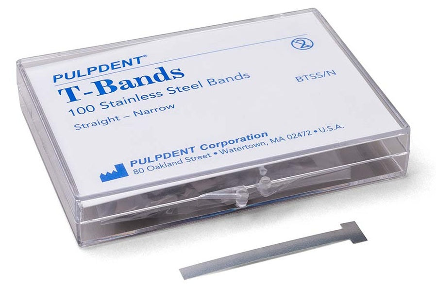 T-Bands are self-contained matrix bands that do not require retainers and will not break or tear when condensing amalgam.