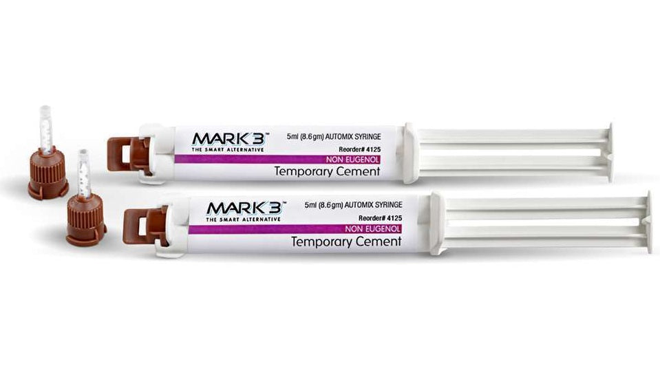 Temporary Cement NE Automix from MARK3 is a non-eugenol temporary crown and bridge cement suitable for cementing temporary crowns or bridges as well as for trial cementing of permanent restorations.