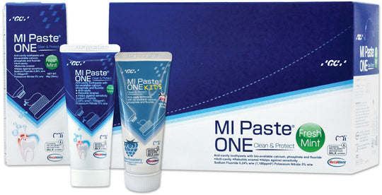 MI Paste® ONE is an anticavity toothpaste with bioavailable calcium, phosphate and fluoride. Sodium fluoride, 0.24% Potassium nitrate, 5% Rebuilds enamel Helps against sensitivityRegular price $161.49Regular price $161.49