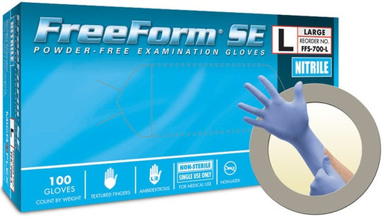 GLOVES NITRILE POWDERFREE FREE FORM SE (100/BX)