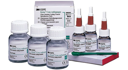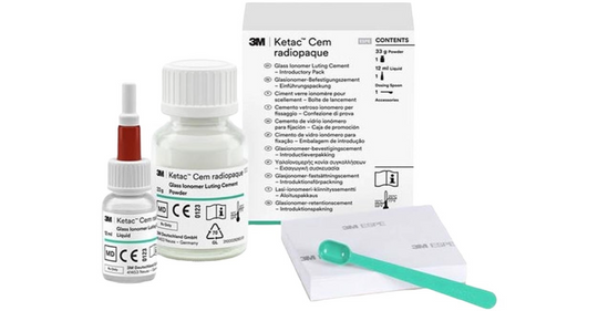 Ketac™ Cem is a radiopaque permanent cement used for cavity lining as well as the cementation of crowns, bridges, inlays, posts, screws and orthodontic bands. Glass ionomer luting cement offers chemical bond to enamel and dentin...Regular price $528.69Regular price $528.69 -