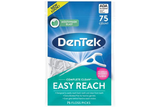 DenTek Complete Clean Back Teeth Floss Picks are the solution for tight spaces anywhere in the mouth: Extended handle easily reaches back teeth Break Proof Scrubbing Floss Bristled Pick brushes deep between teeth Minty flavor that...Regular price $32.29Regular price $32.29 -