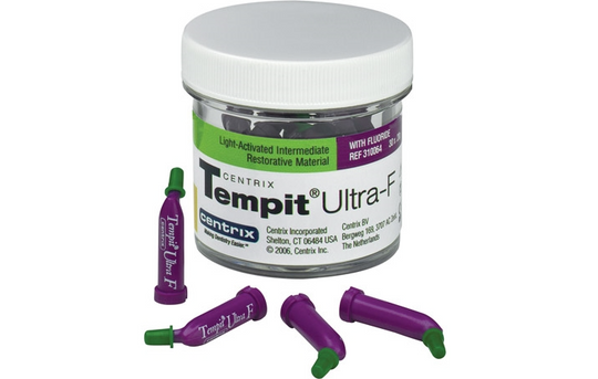 Tempit® Ultra-F Light-Activated Intermediate Restorative Material was developed specifically for temporary fillings that last up to one year. Tempit® Ultra is supplied in unit-dose syringe tips, ready for direct delivery into the prep. No etching or...Regular price $108.79Regular price $108.79 -