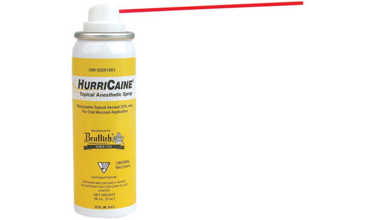 Hurricaine® is a topical oral anesthetic formulated with 20% Benzocaine to quickly and temporarily relieve oral pain. Indications include: minor dental procedures, minor gum injury, minor mouth irritation caused by dentures or orthodontic appliances, canker sores,...Regular price $39.75Regular price $39.75 -
