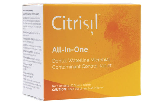 Citrisil® Shock Tablets clean dental unit waterlines and kill odor-causing bacteria. Cleans the inner surface of dental bottles Non-oxidizing formula Chemically compatible with the Sterisil® Antimicrobial Bottle with built-in antimicrobial properties to protect the bottle EPA...Regular price $49.29Regular price $49.29