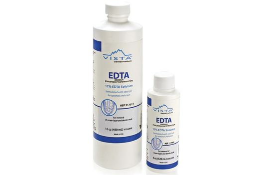 EDTA is a 17% aqueous solution used for endodontic irrigation, removal of the smear layer and dentin mud from root canals. Prepares dentin wall for better adhesion of filling materials Ideal pH for optimized chelation Opens...Regular price From $24.05Regular price From $24.05 -