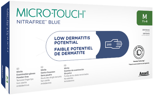 Micro-Touch® Nitrafree™ Blue Exam Gloves provide comfortable and reliable protection with a low dermatitis potential, thin and lightweight formulation and textured fingertips that ensure a secure grip. Made without sulfur-based chemical accelerants for tactility and to...Regular price $27.19Regular price $27.19