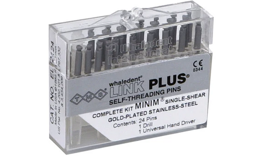 TMS® (Thread Mate System®) Link Series® are self-threading parapulpal pins, made of alpha-beta titanium alloy or gold-plated stainless steel. Smooth self-alignment during placement Shoulder stop Single shear pins or double shear pins available Color-coded Kodex® drills...Regular price From $232.05Regular price From $232.05