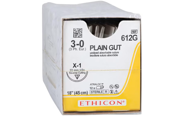 SUTURE ETHICON 3-0 GUT 612G X1 NEEDLE (12/BX)