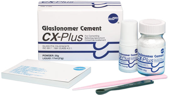 CX-Plus is an enhanced glass ionomer luting cement with prolonged working time. Indications include cementing crowns, inlays, long-span bridges and orthodontic appliances. Prolonged working time with no change in viscosity Low film thickness (20 microns) High...Regular price From $55.67Regular price From $55.67