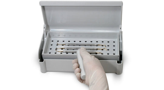 The Bur Tray is specially designed for cold sterilization of carbide and diamond burs. The tray is constructed of high impact plastic that is compatible with all sterilant and disinfectant solutions and instruments. A small opening...Regular price $22.18Regular price $22.18