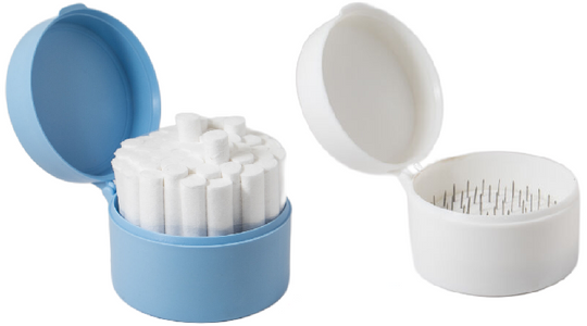 Cotton Roll Holders/Storage has a plastic base that contains over 50 stainless steel pins to securely hold an entire package of cotton rolls. The plastic hinged lid of this dispenser closes to keep remaining rolls clean...Regular price $23.79Regular price $23.79 -