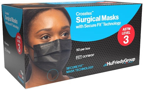 FACE MASK SURGICAL SECURE FIT BLACK LEVEL 3 (50/BX)