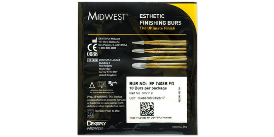 Midwest® Esthetic Finishing Burs have multiple precision-ground cutting edges for steady, consistent cutting performance. Optimized blade geometry Noncutting safe end tips for soft tissue protection Improved access and visibility to posterior teeth for great pediatric and...Regular price $134.29Regular price $134.29