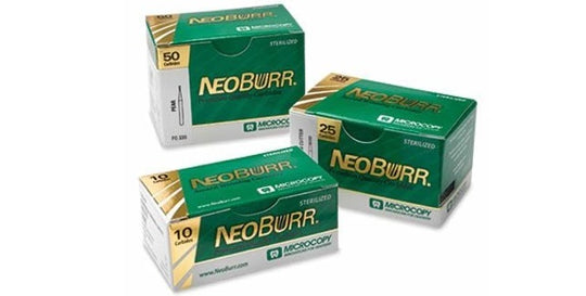 NeoBurr® Operative Carbide Burs are produced from fine grain tungsten carbide and hardened stainless steel. These 6-blade burs are available in FG (friction grip) and RA (right angle-latch type) shanks. 6-blade, deep-cut premium grade tungsten carbide...Regular price $88.39Regular price $88.39