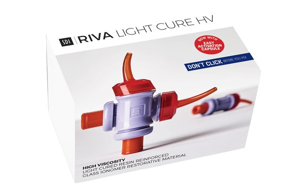 Riva Light Cure HV (High Viscosity) is a radiopaque, resin-reinforced glass-ionomer restorative material that chemically bonds to tooth structure while offering the aesthetics of a composite.