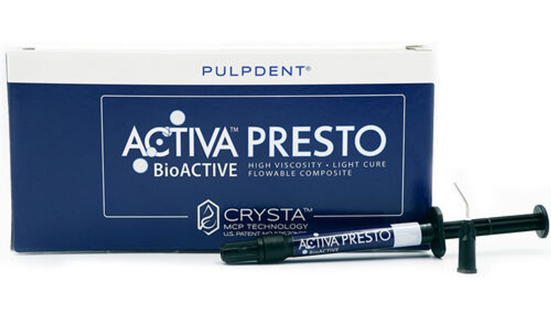 Activa™ Presto™ Stackable Light Cure Universal Composite helps return calcium, phosphate and fluoride to the teeth that are lost during prep with bioavailable ions. It is a patented rubberized resin matrix that is fracture-resistant.