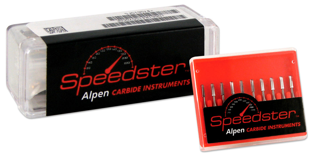 Alpen® Speedster® Carbide metal cutting burs rapidly cut amalgam, metal, enamel and dentin. The computer aided manufacturing design generates a bur that has an optimal and precise bur performance. These metal cutting burs cut aggressively without stalling or clogging, reducing prep and chair time.