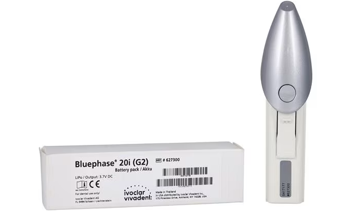 bluephase® 20i is a battery-operated LED polymerization light that combines the maximum light intensity of 2,000 mW/cm2 in the Turbo mode with an extremely short curing time of no more than 5 seconds for light and dark composites, while being gentle to the pulp and the soft tissue.