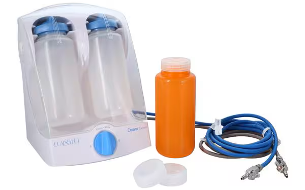 Contains: DualSelect™ dispensing unit with air and water lines and quick disconnects, 2 bottle assemblies, 2 storage caps, 1 disinfectant bottle, 1 storage cap and literature pack