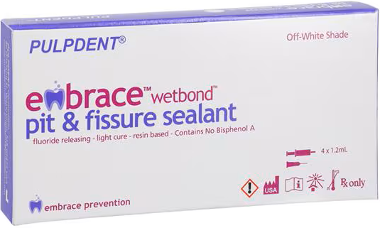 Embrace™ WetBond™ Pit and Fissure Dental Sealant is hydrophilic, moisture tolerant resin restorative that bonds chemically and micromechanically to slightly moist teeth.