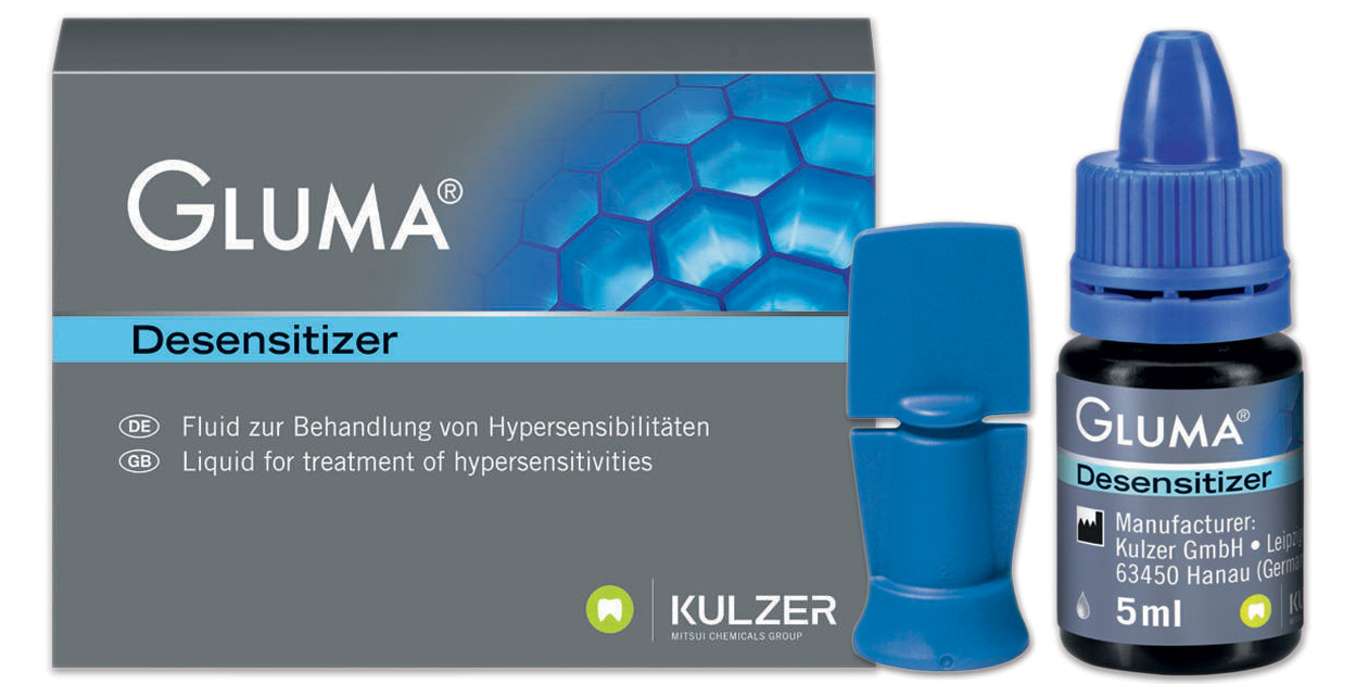 Gluma® Desensitizer is indicated for treating cervical hypersensitivity and eliminating dentinal hypersensitivity. It is also used as a pretreatment to priming and bonding for direct composite restorations and prior to placing compomer and amalgam restorations.