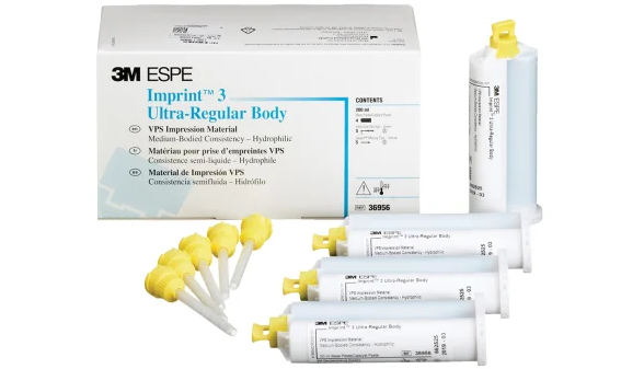Imprint™ 3 VPS impression material offers nearly 100% elastic recovery after stretching so it is less likely to distort upon removal, resulting in a more accurate impression and precise-fitting restoration the first time. Used for all dual-phase impressions: crown, bridge, inlay and onlay preparations, implant abutments, orthodontic impressions and related impressions such as matrix for provisional restorations, tooth reduction guides, study models and bleaching trays.