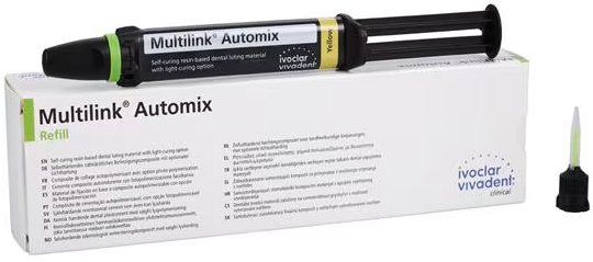 Multilink® Automix is a self-curing luting composite with light-curing option for the adhesive luting of indirect restorations made of metal, metal-ceramic, all-ceramic and composite.