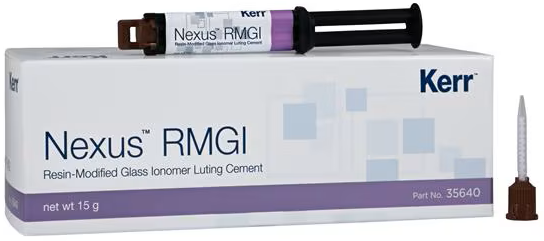 Nexus™ RMGI Glass Ionomer Luting Cement is a self-adhering paste is delivered in an automix syringe and offers outstanding bond strength to tooth structures and common substrates.