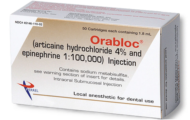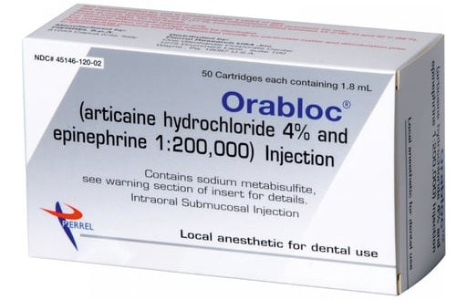 Orabloc® is an amide local anesthetic containing a vasoconstrictor indicated for local, infiltrative or conductive anesthesia in both simple and complex dental procedures. Orabloc is available in two epinephrine formulations: 1:200,000 – commonly used for routine procedures and 1:100,000 – when pronounced homeostasis or improved visualization of the surgical field is required.