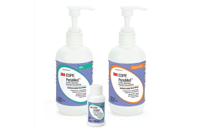 PerioMed™ 0.63% Stannous Fluoride Oral Rinse Concentrate is an antimicrobial oral rinse that is indicated to help manage periodontitis, dental caries, sensitivity and plaque accumulation.