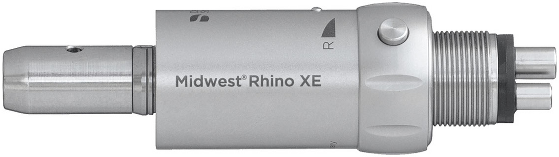 The Midwest® Rhino XE 20K E-Type Low Speed Air Motor is to be used with single-piece attachments for the removal of caries, polishing and extraoral appliance adjustments.