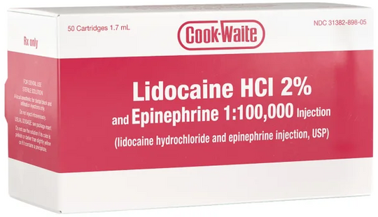 LIDOCAINE 2% 1:100 RED (50/BX)